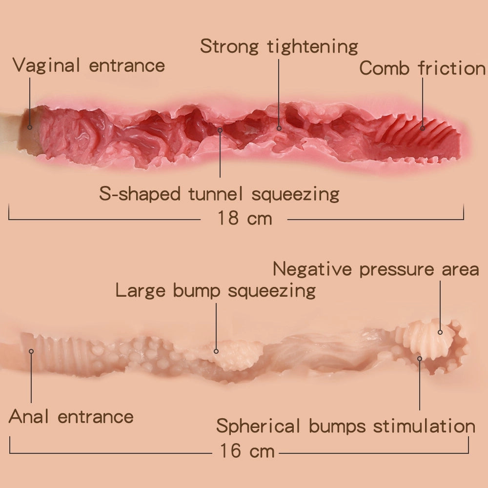 This is a torso doll with a tight anus. She can give you a real skin-to-skin experience. Her pussy is an exact replica of a real female pussy. The outer labia are very soft and full of folds. It looks real. Even better. her vagina was full of bumps and bumps. Different stimuli make intercourse more real as you go deeper. If you like doggy style. her tight anus is sure to give you an orgasm.