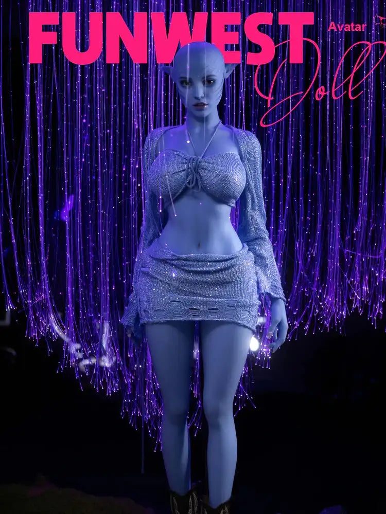 F2291-157cm(5.2ft)-40kg G Cup Kylie Fantasy Blue Anime TPE Blue Alien Sex Doll Video|FunWest Doll