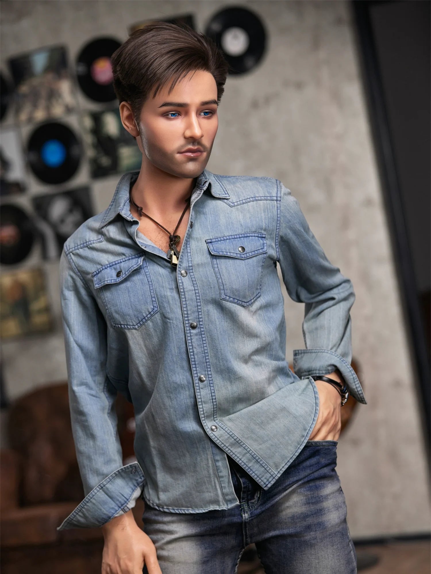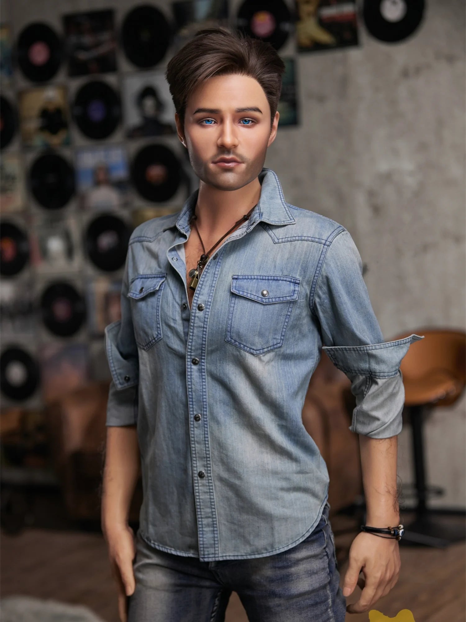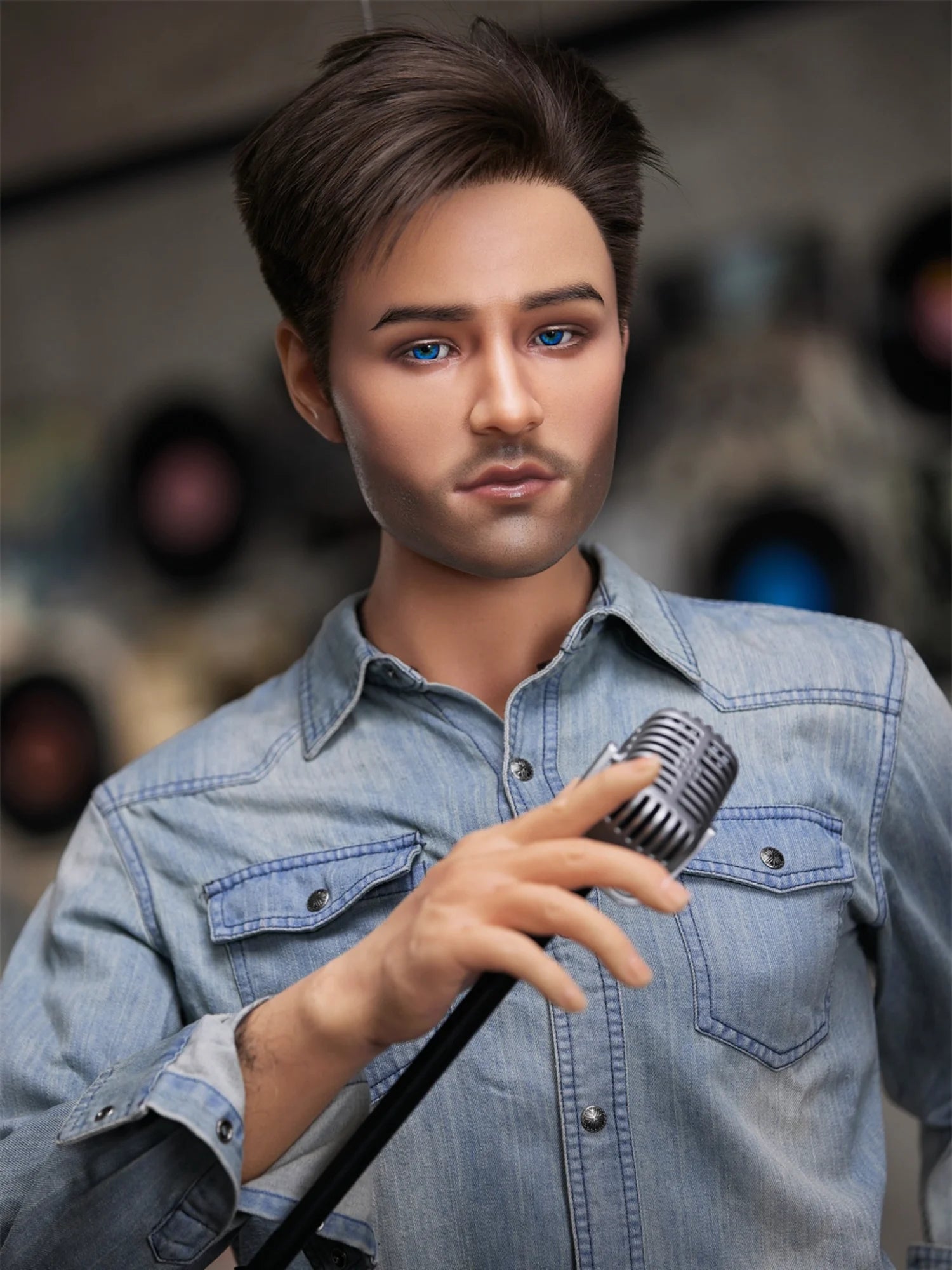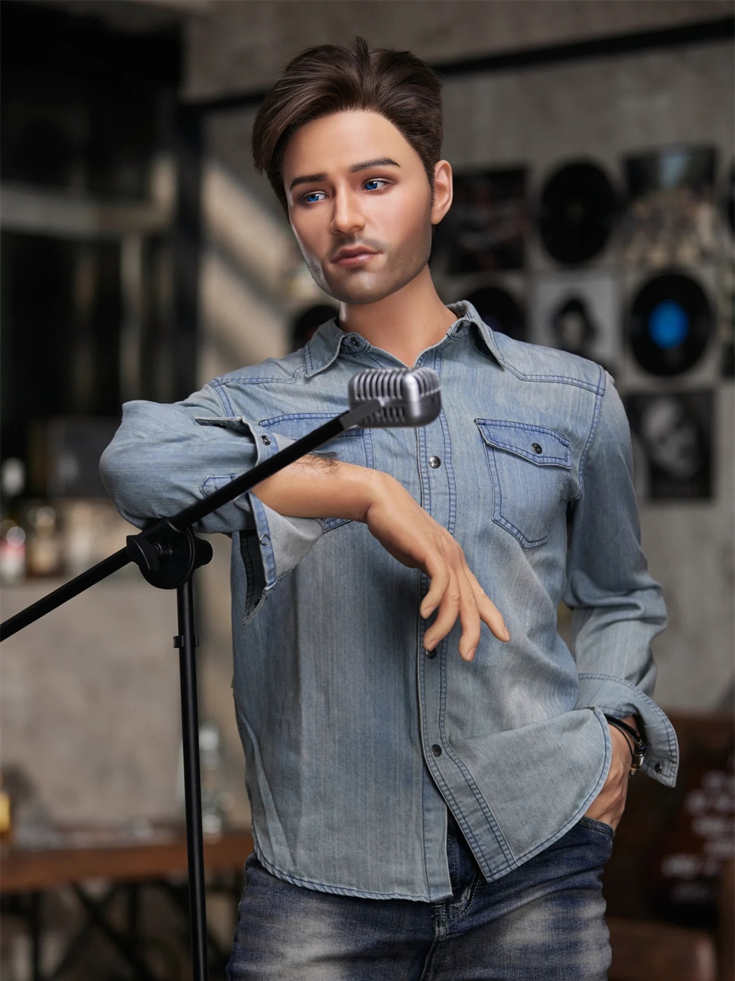 This 170cm tall. perfectly proportioned doll sings softly and artfully in a denim jacket with a microphone in his hand. like your very own stage star. ready to give a sensual and emotional musical performance in front of you.