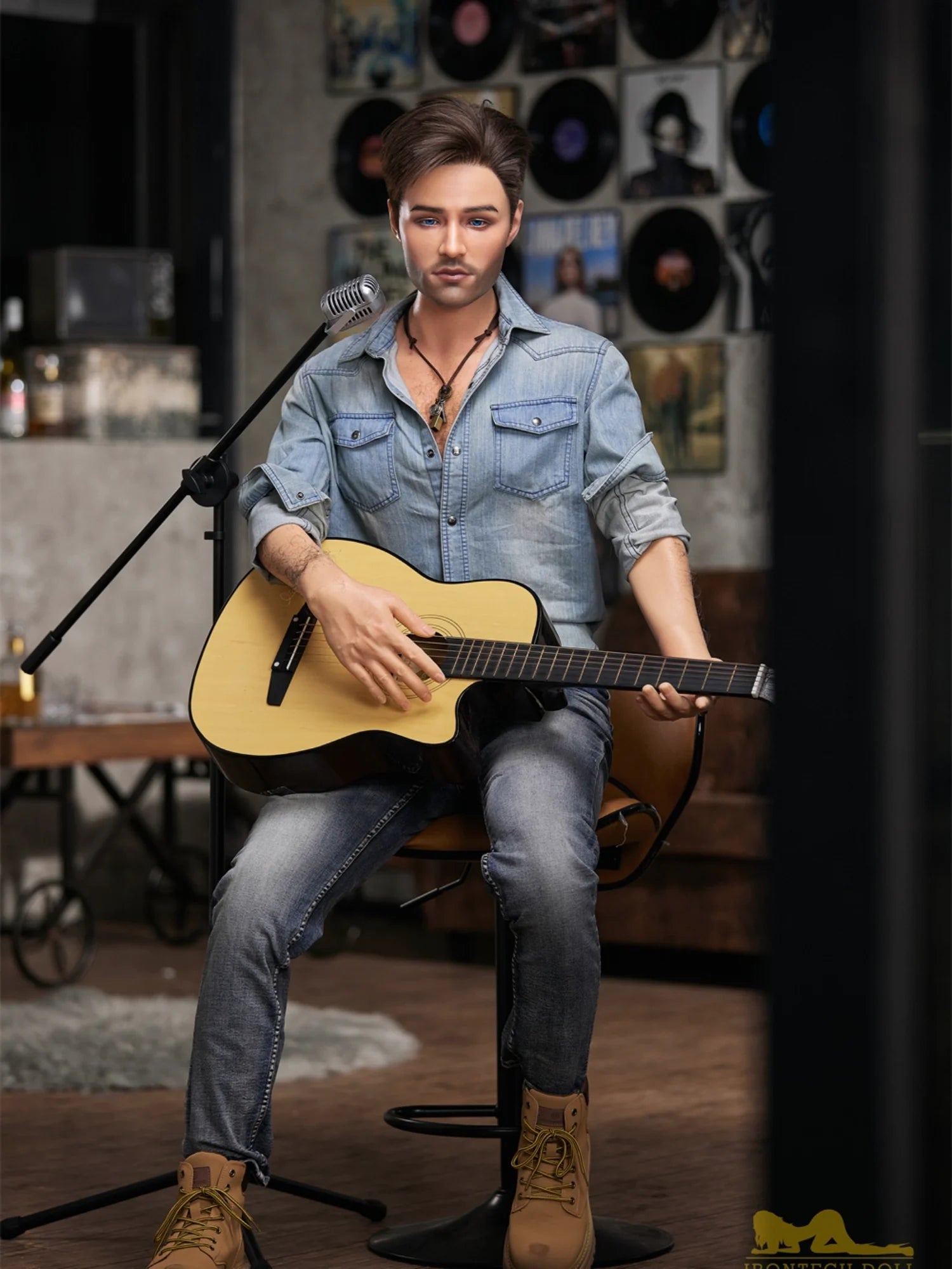 This 5ft7 F232-Musical Talent 170cm/silicone male sex doll from Irontech Doll is a true musician. featuring realistic jeans and denim jacket attire with a microphone and guitar in hand. Articulate facial features and body structure make him a perfect addition to any stage.