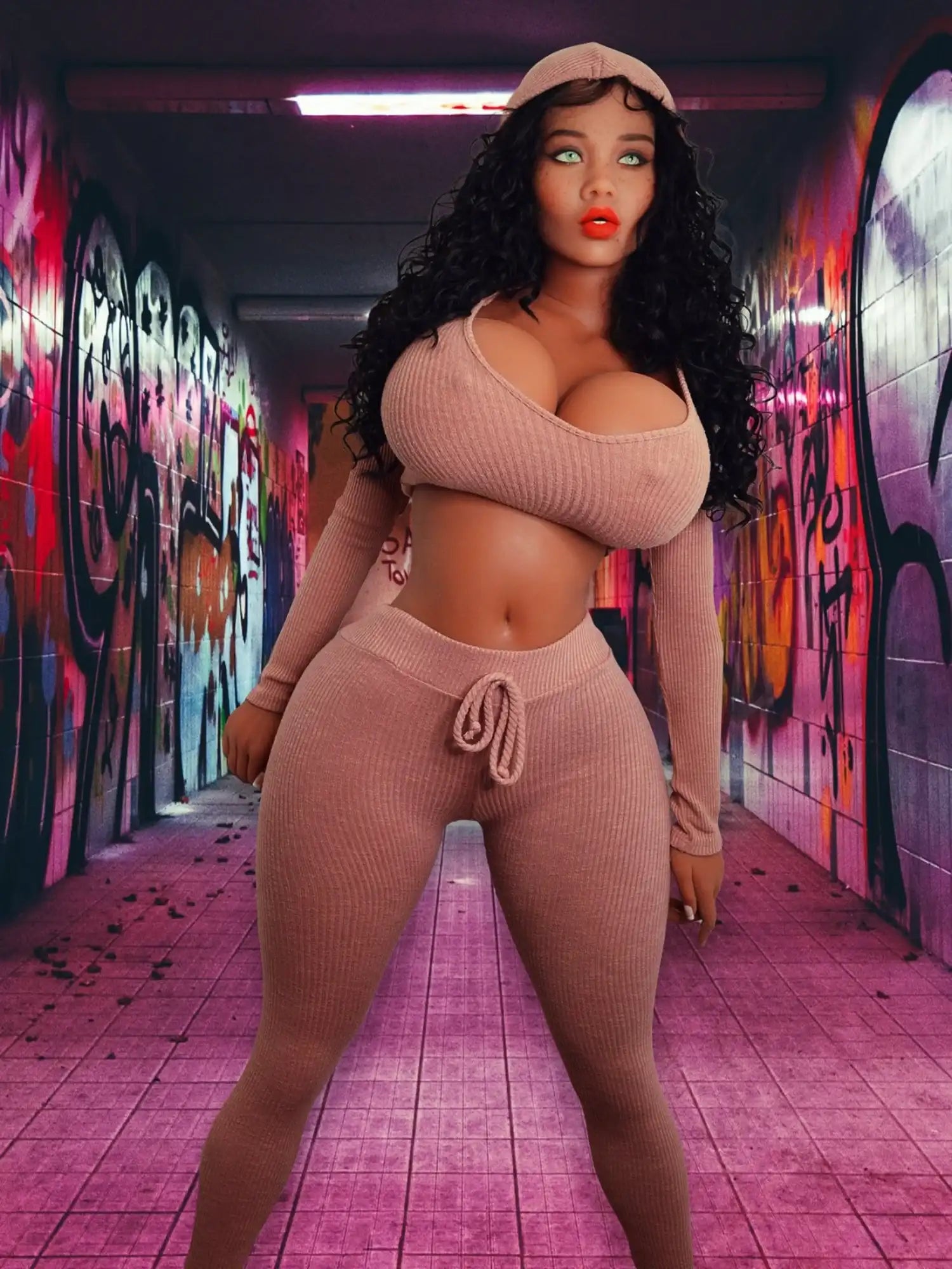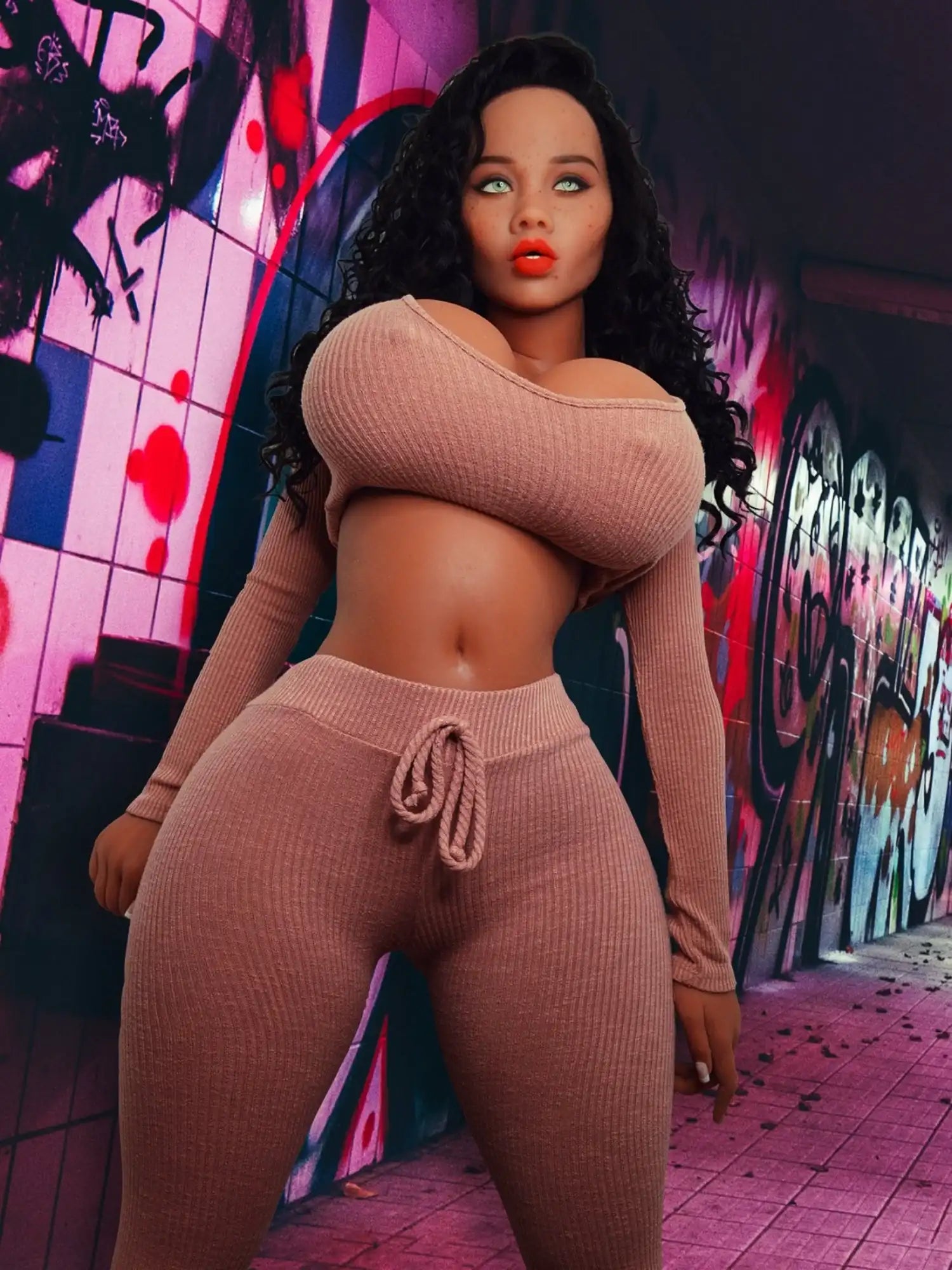 She is made of TPE materials. sexy face with very realistic design. big eyes. high bridge nose. small sexy lips tell her beauty.she is in153cm/5ft.44kg. big G cup breasts and hips very sexy. if you want her breasts suitable for breasts sex.realistic vagina simulate a real woman’s channel bring you the most realistic feelings.