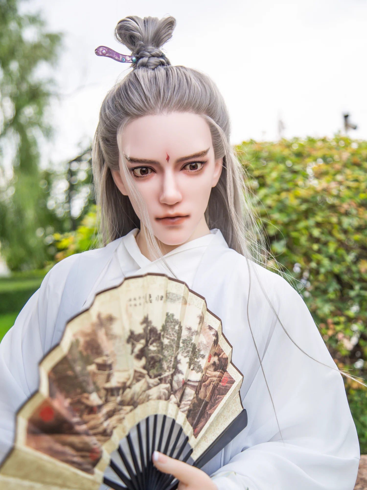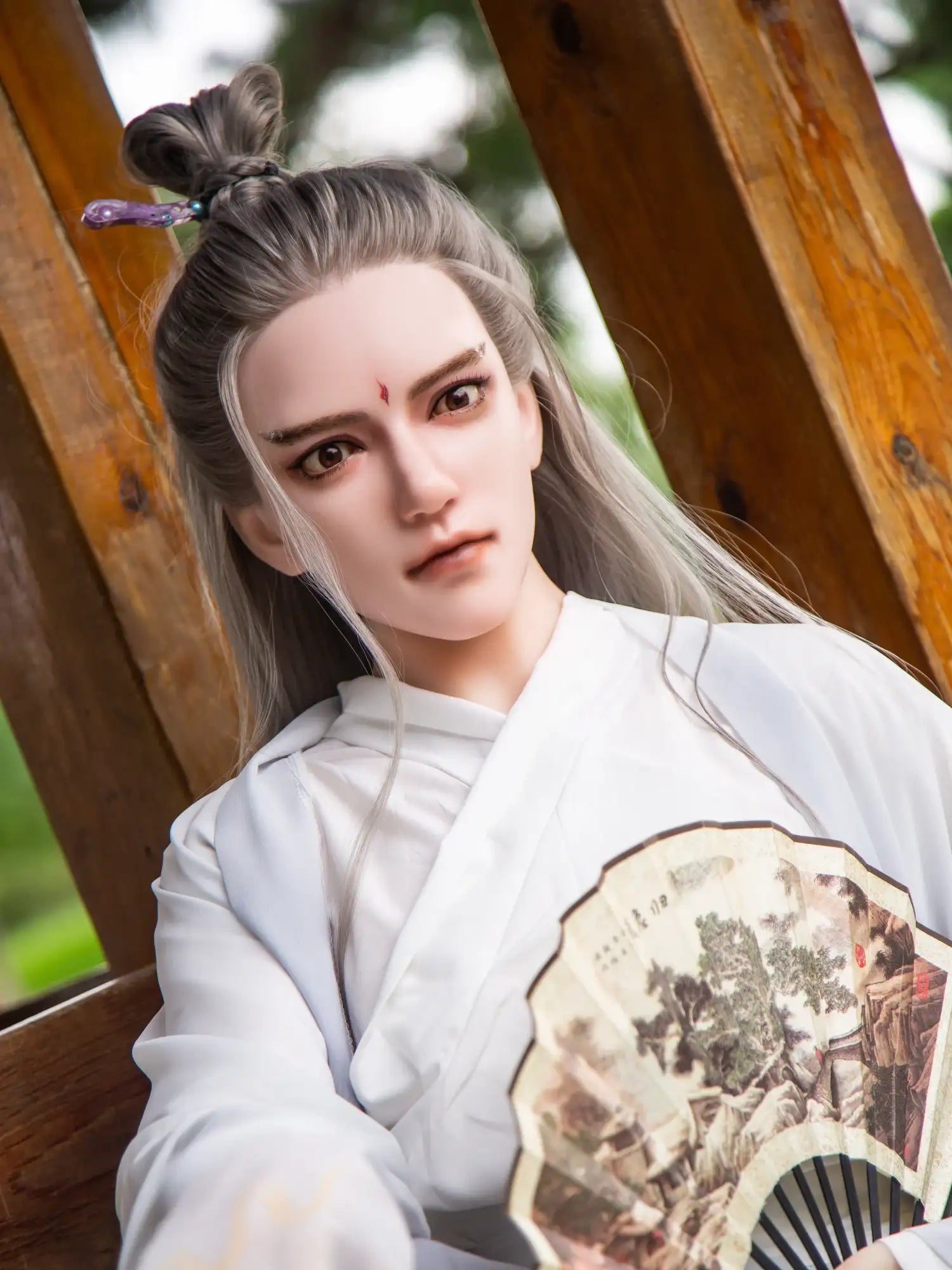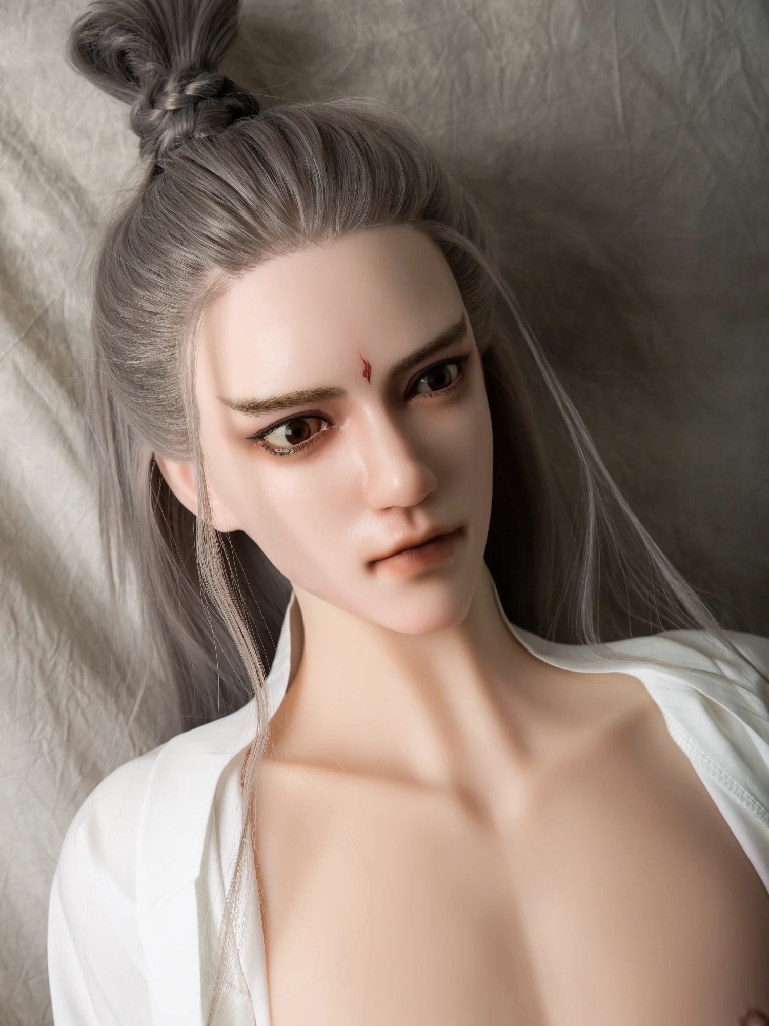 This male doll combines the design of silicone head and TPE body. which perfectly shows the charm of the ancient style beautiful man. Dressed in ancient Chinese style clothes with long silver hair. he gives a unique sense of nobility and beauty of ancient charm. The delicate face of the silicone head makes his features more three-dimensional and realistic. as if you can feel his emotions and mysterious aura when gazing at him. while the TPE body provides a soft skin touch that is no different from real skin. especially when interacting with it. and the muscle lines and feel of the body are to die for.