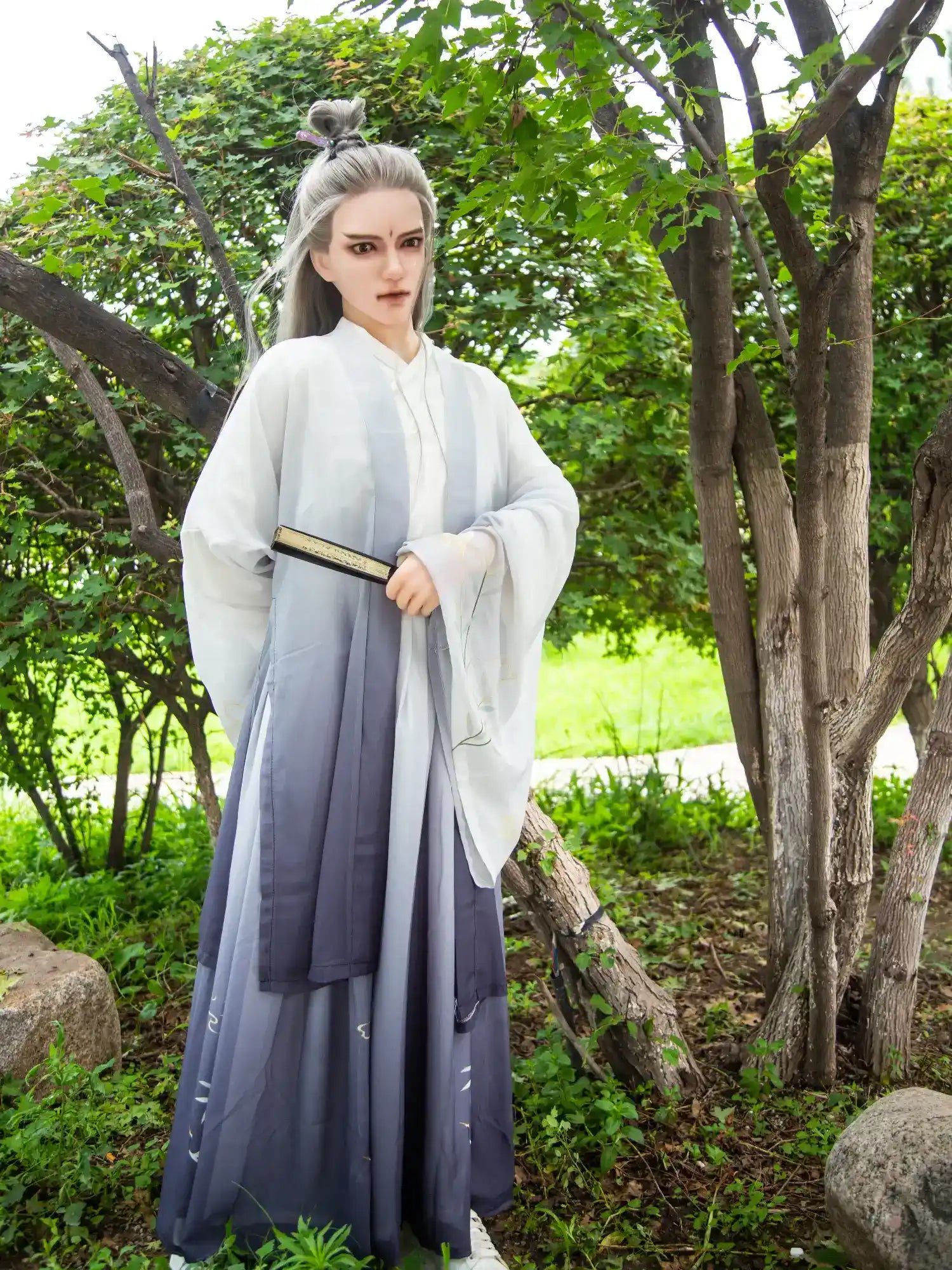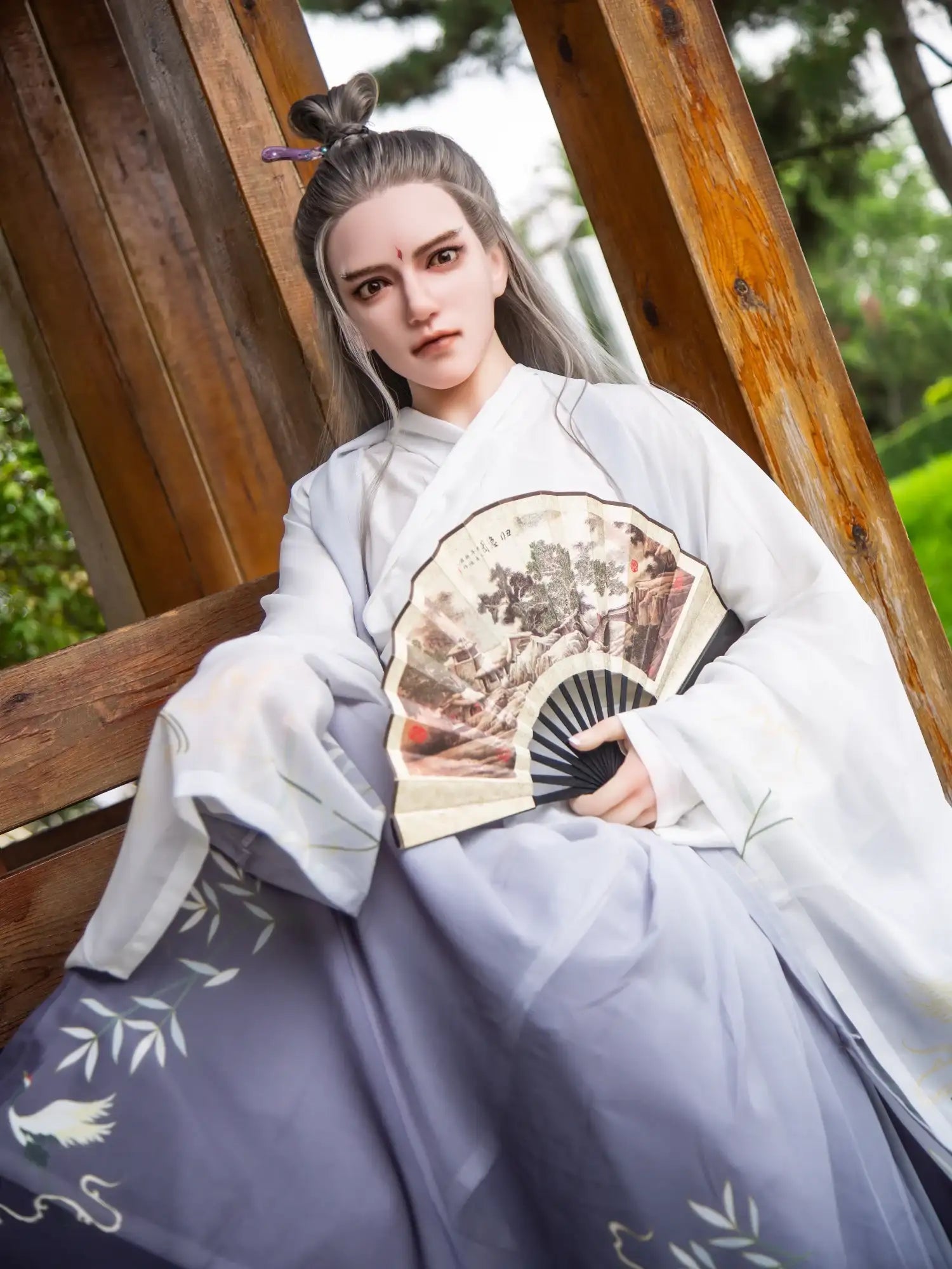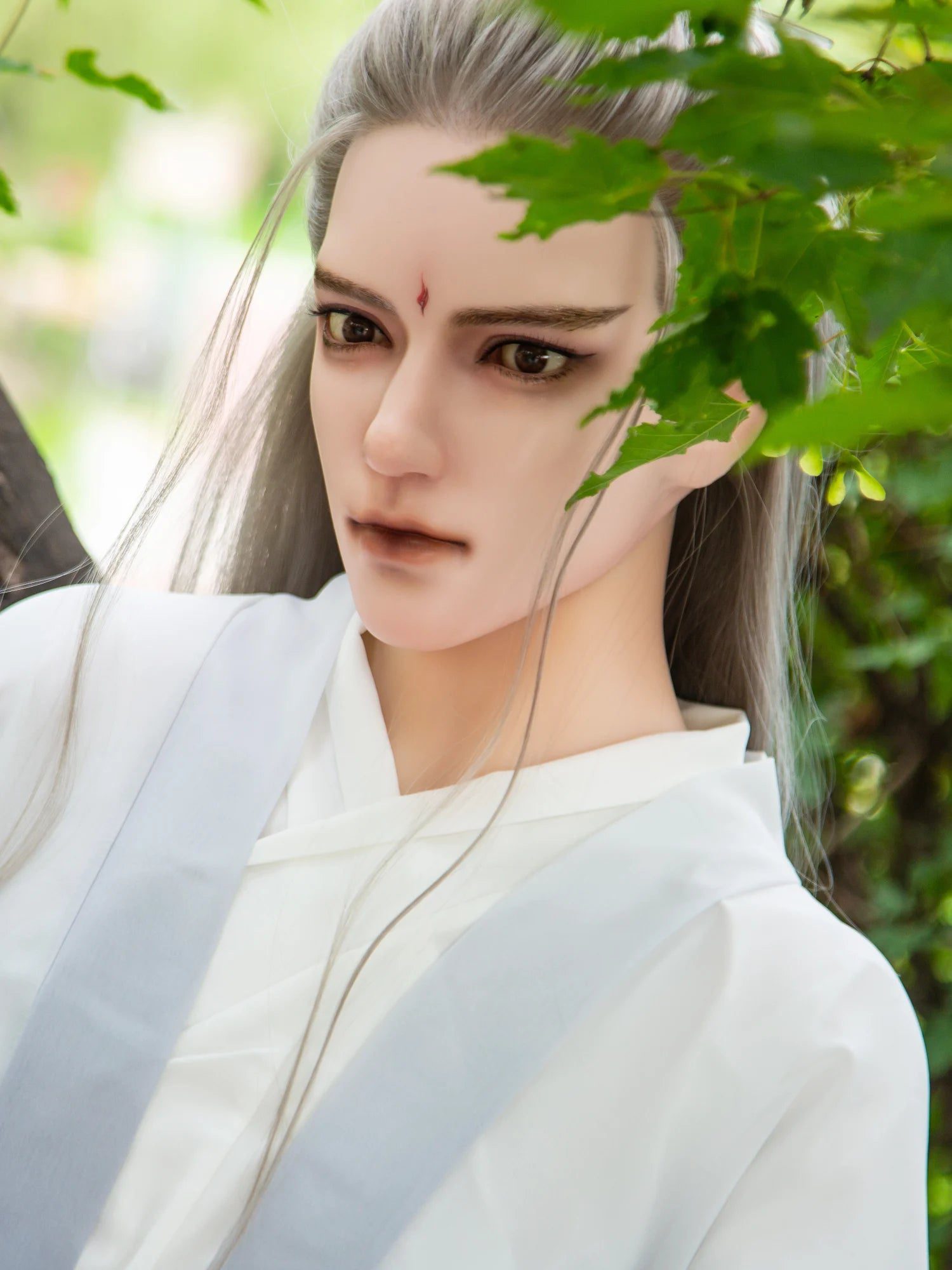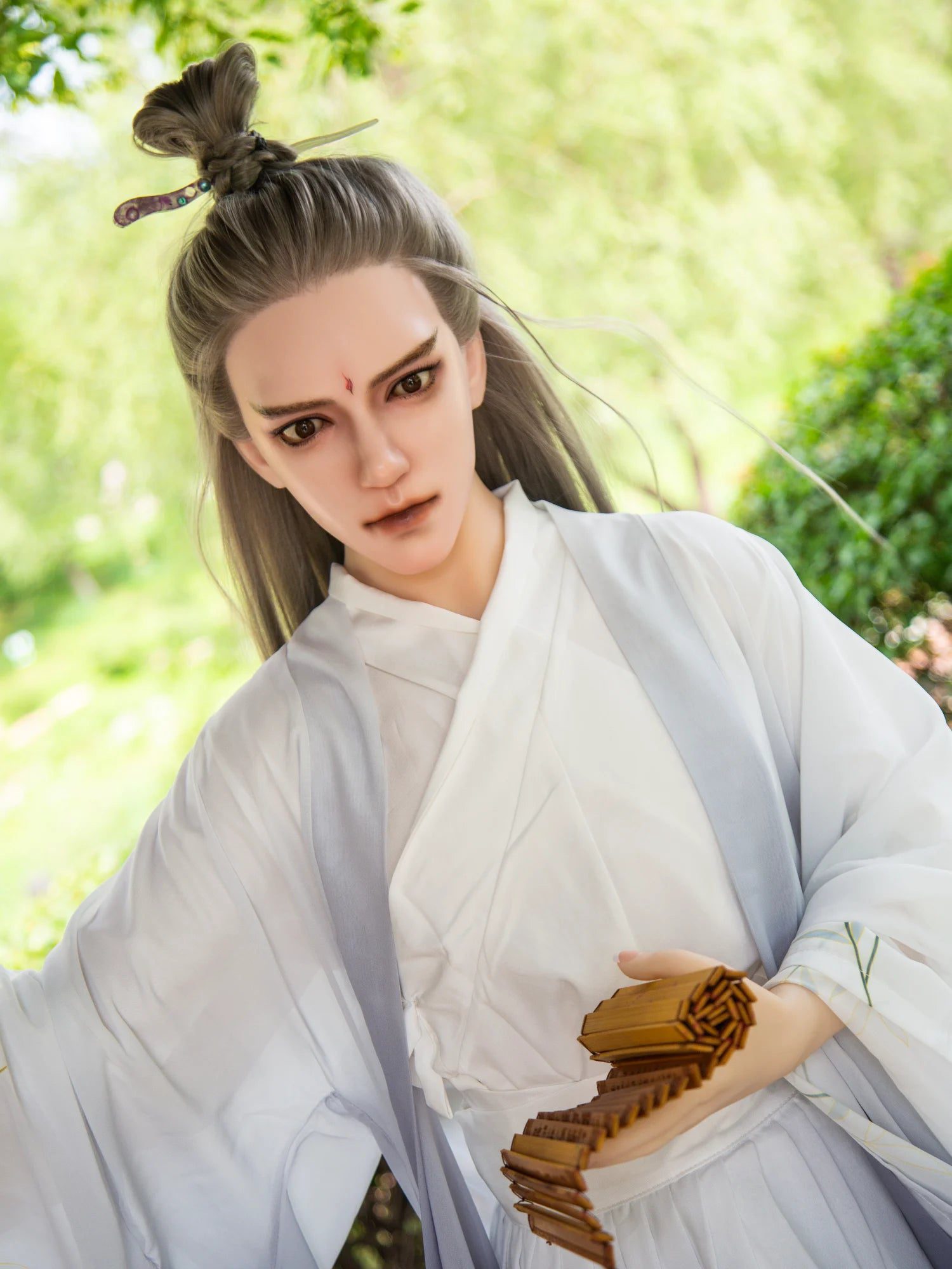 This male doll combines the design of silicone head and TPE body. which perfectly shows the charm of the ancient style beautiful man. Dressed in ancient Chinese style clothes with long silver hair. he gives a unique sense of nobility and beauty of ancient charm. The delicate face of the silicone head makes his features more three-dimensional and realistic. as if you can feel his emotions and mysterious aura when gazing at him. while the TPE body provides a soft skin touch that is no different from real skin. especially when interacting with it. and the muscle lines and feel of the body are to die for.